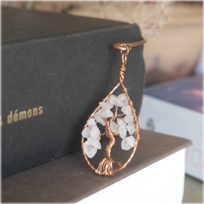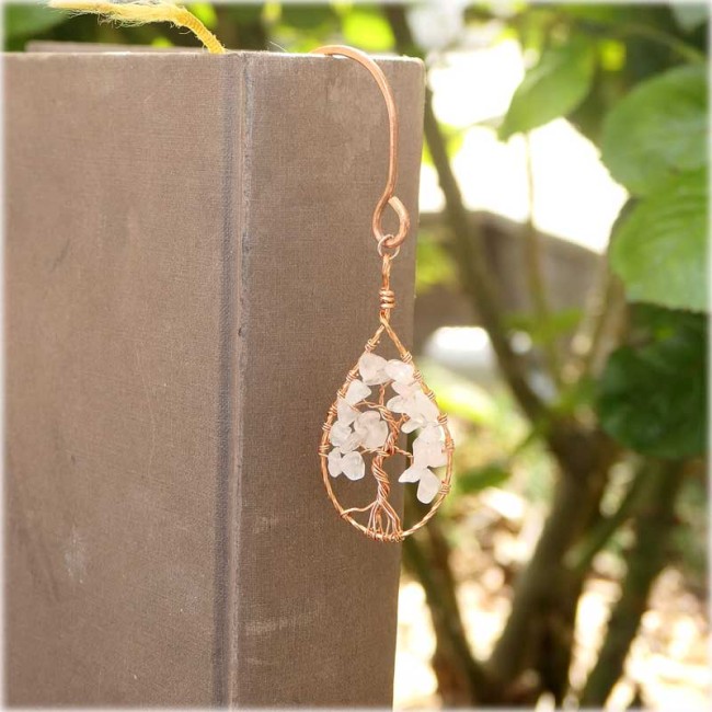 Le Marque Page en Métal sous le signe de l'Arbre de Vie avec ses perles de quartz rose est fabriqué dans mon atelier.
