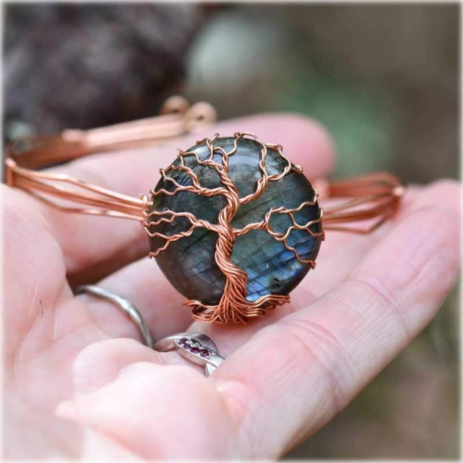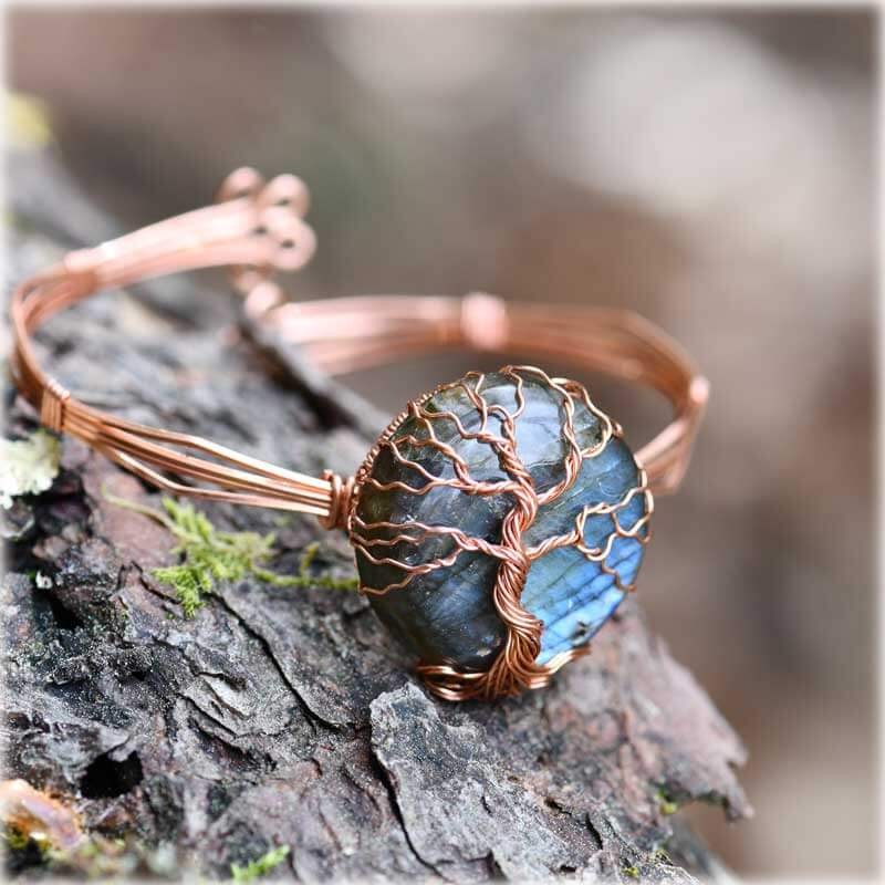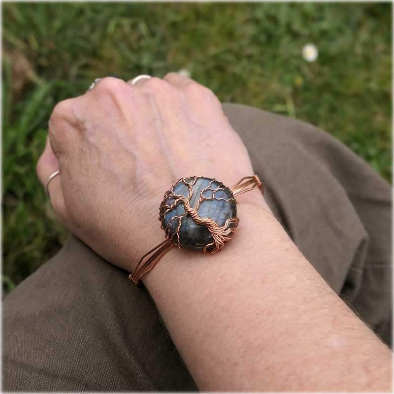 Le Jonc Arbre de Vie en Cuivre en labradorite est entièrement réalisés dans mon atelier avec la technique du Wire Wrapping.
