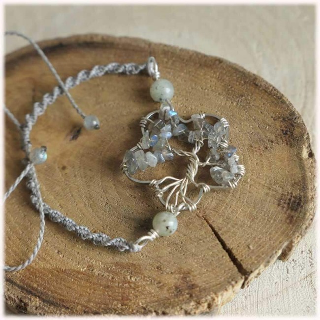 Bracelet Macramé Arbre de Vie perles de labradorite