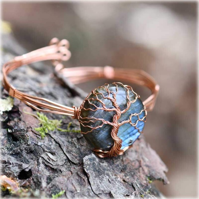 Bracelet Cuivre Jonc Arbre de Vie Labradorite