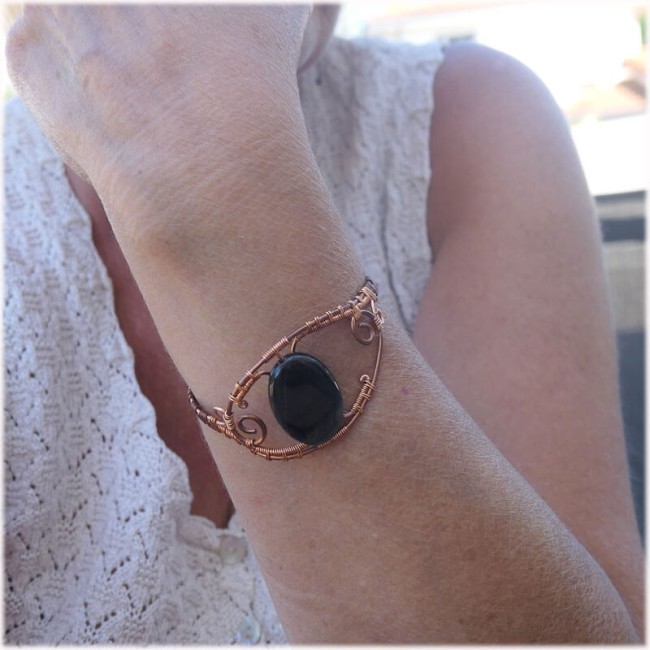 Boucles d'Oreilles Cuivre Perles Pierre de Gemme au choix, Bijou Wire Wrapping Fil de Cuivre Elfiques